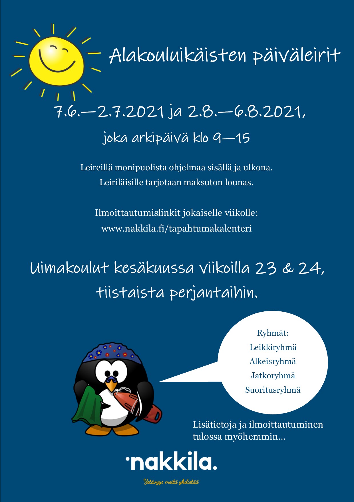 Päiväleirit ja uimakoulut Nakkilassa kesällä 2021