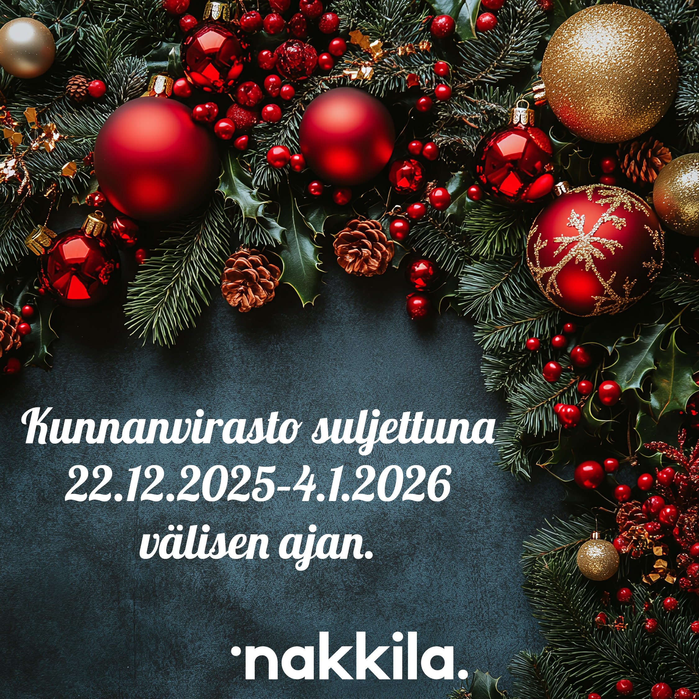 Kunnanvirasto suljettuna 22.12.2025–4.1.2026 välisen ajan.
