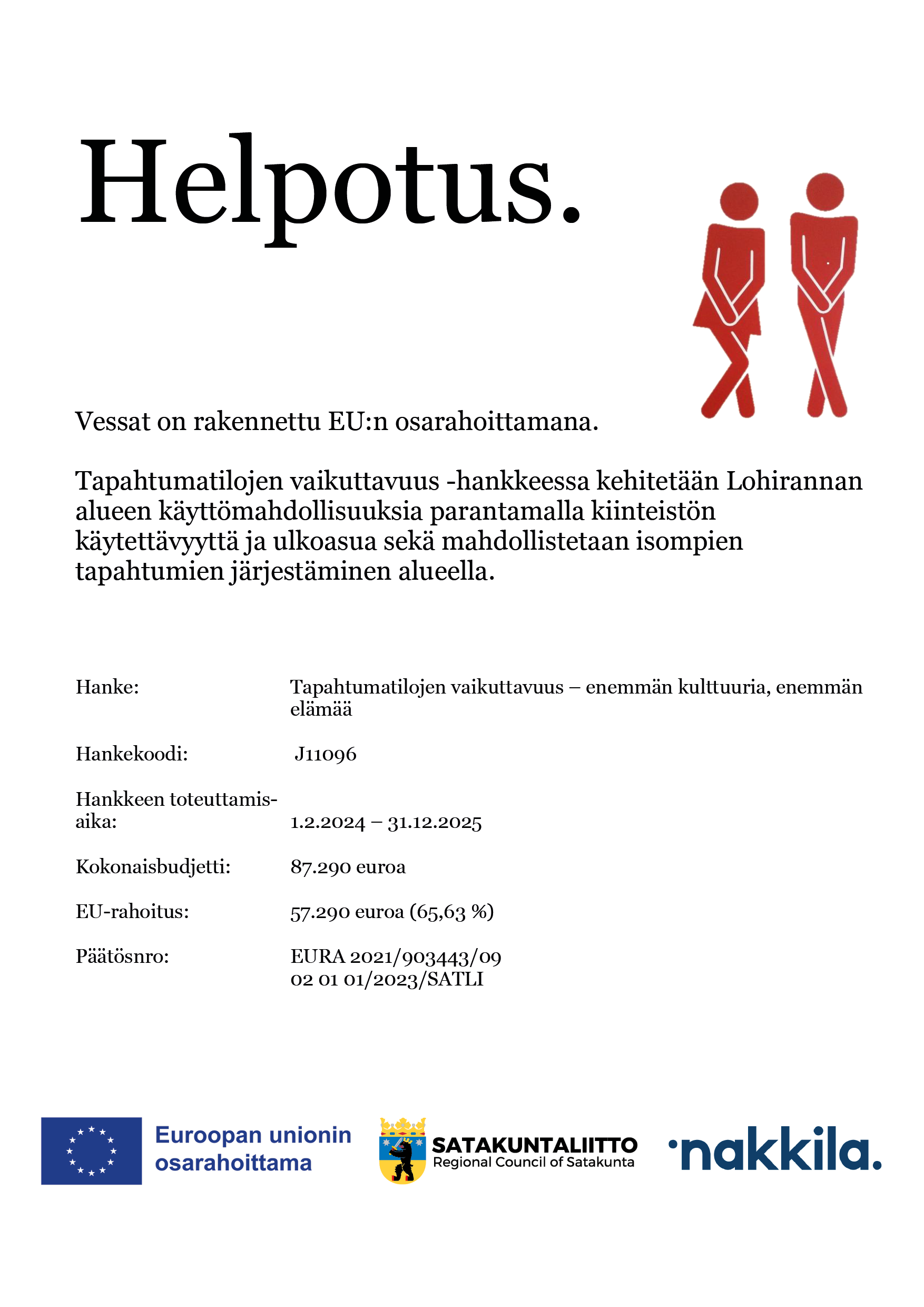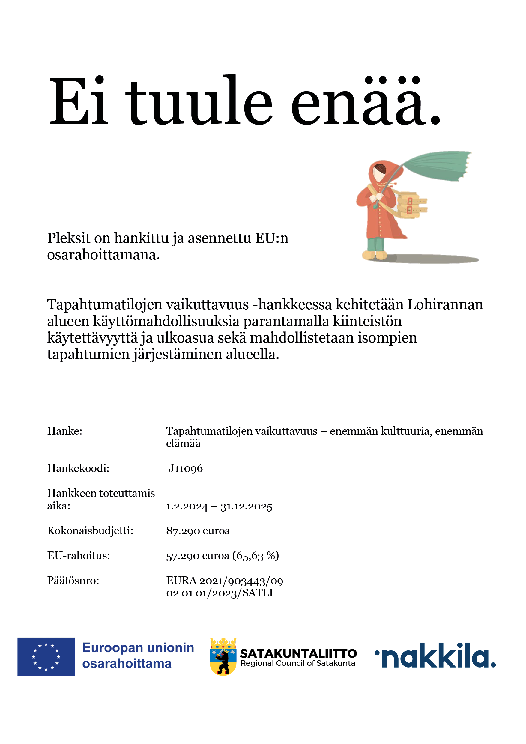 Nakkilan kunta haki perusrakenteen investointitukea matkailu- ja kulttuuriliiketoiminnan kehittämiseen. Kunta toimi hankkeen toteuttajana ja tavoitteena oli mahdollistaa kunnan matkailuinfraa kehittämällä alueen yritysten toiminnan laajentuminen. Yritysten toimintamahdollisuuksilta kohteissa poistettiin esteitä ja negatiivisia kannusteita Lohirannan alueeseen kohdistuvin parannuksin. Hankkeen avulla lisättiin erityisesti 200 – 1000 hengen tapahtumien toteuttamista. Hanke linkittyi maakuntaohjelman teemaan Elämystalous. Satakunnan JTF-suunnitelman osalta hanke kytkeytyi teemaan aluetaloudenmonipuolistaminen ja uudistaminen (matkailu)