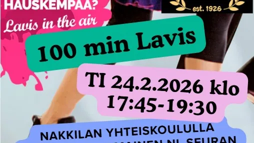 100 minuutin Lavis-tunti Nakkilan Liikuntaseuran järjestämänä, jäsenille ilmainen muille kertamaksu 5 €