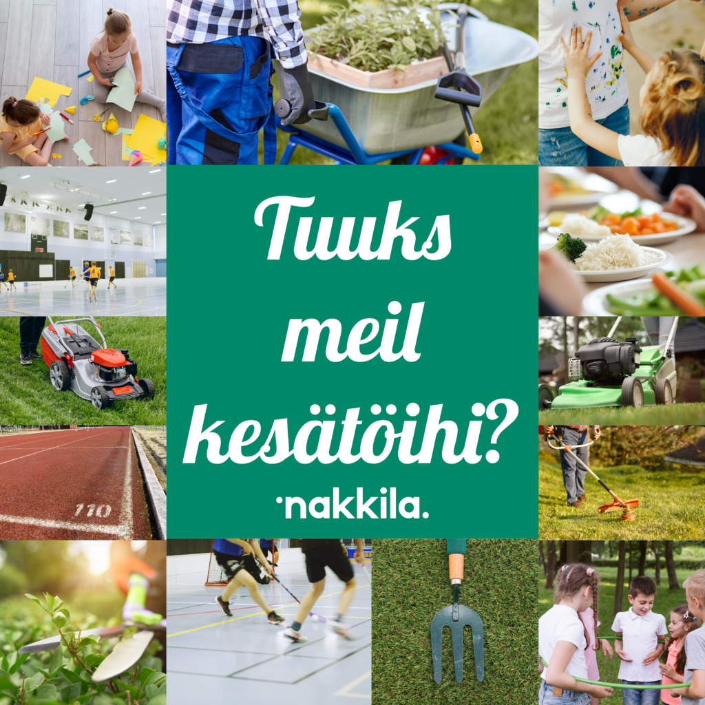 Nakkilan kunta tarjoaa tänä vuonna upeita kesätyömahdollisuuksia nakkilalaisille nuorille 7. luokasta alkaen. Kunta työllistää nuoria eripituisiin työsuhteisiin ja monipuolisiin työtehtäviin kunnan eri hallintokunnissa. Kesätyöt tarjoavat oivan mahdollisuuden tutustua eri ammatteihin ja työelämään. Usein kesätöistä jää aikuisuuteen asti kantavat kivat muistot.