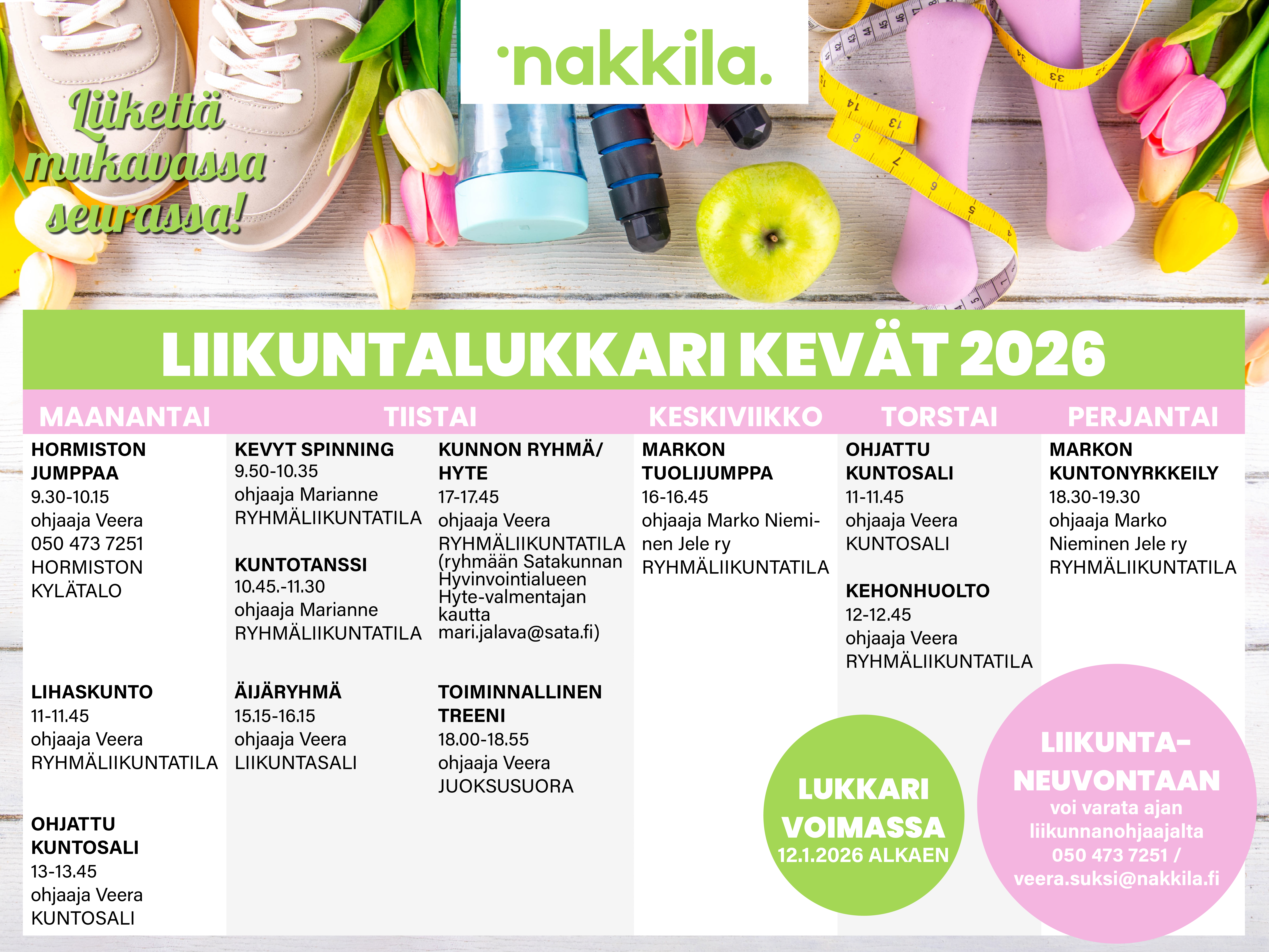 Varaamme oikeuden ohjelman muutoksiin. Mahdollisista muutoksista ilmoitamme osoitteessa www.nakkila.fi sekä äkillisistä muutoksista kunnan sosiaalisessa mediassa.
